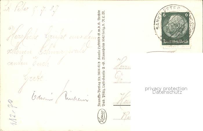 71906807 alte Postkarte St Peter Schwarzwald Abtei postalisch gelaufen KatCode: 11110008315095