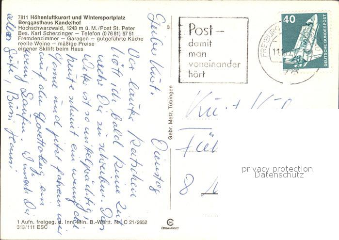 alte Postkarte St Peter Schwarzwald Berggasthaus Kandelhof postalisch gelaufen Erhaltung siehe scans
