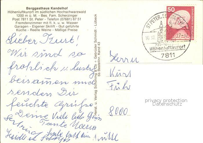 alte Postkarte St Peter Schwarzwald Berggasthaus Kandelhof postalisch gelaufen Erhaltung siehe scans