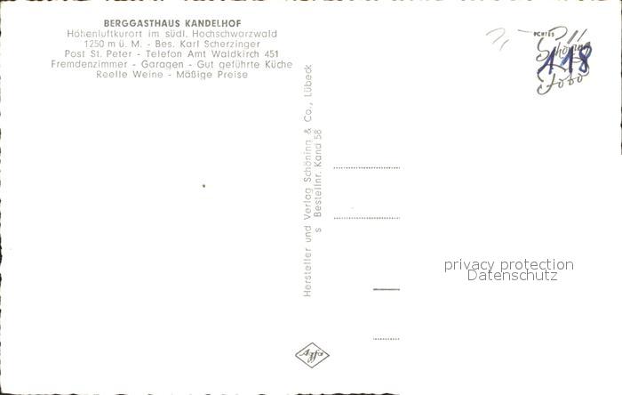 72312900 St Peter Schwarzwald Berggasthaus Kandelhof Aussichtskanzel Bergkapelle Glottertal Waldkirch Simonswaeldertal St Maergen postalisch nicht gelaufen Erhaltung siehe scans KatCode: 11110008315095
