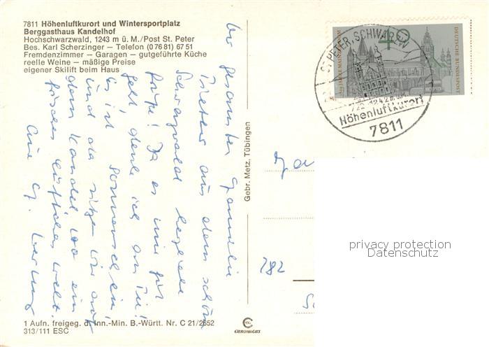 73781206 alte Postkarte St Peter Schwarzwald Berggasthaus Kandelhof Fliegeraufnahme Kirche postalisch gelaufen Erhaltung siehe scans [FriedD77] KatCode: 11110008315095
