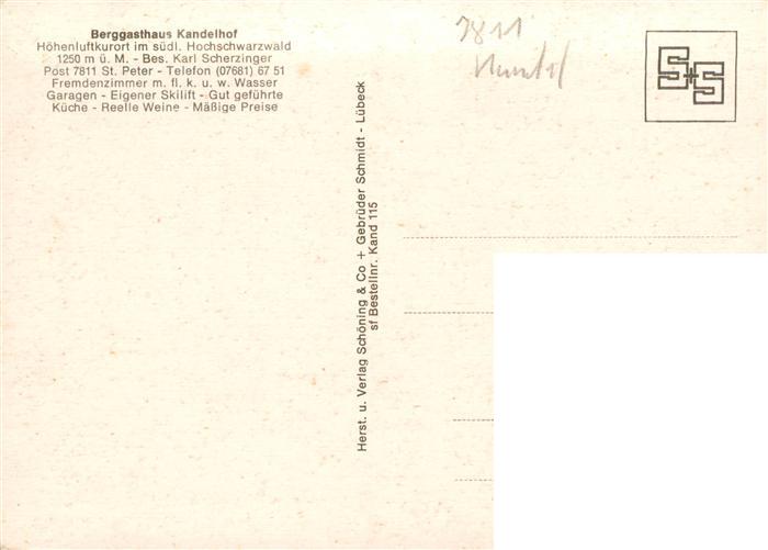 73929369 St Peter Schwarzwald Berggasthaus Kandelhof Gastraum Bergkapelle und Kandelhof postalisch nicht gelaufen Erhaltung siehe scans [FriedD77] KatCode: 11110008315095