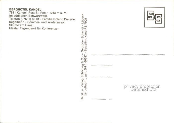 71941205 St Peter Schwarzwald Berghotel Kandel postalisch nicht gelaufen Erhaltung siehe scans KatCode: 11110008315095