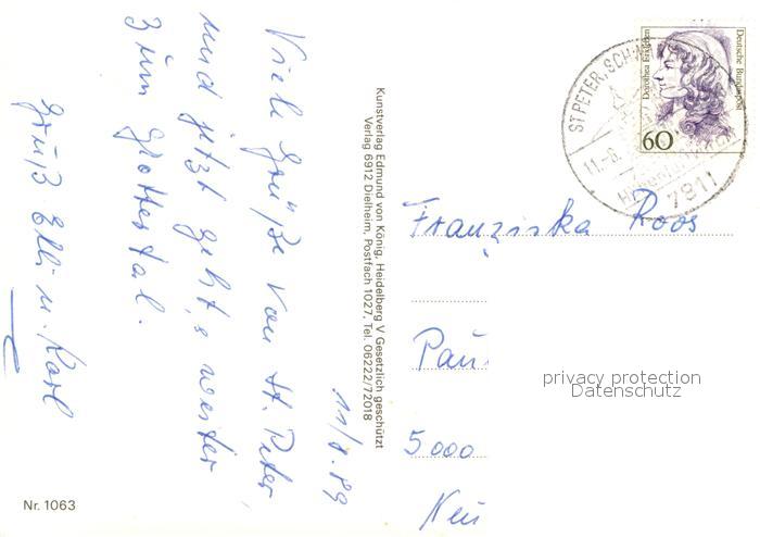 72950445 alte Postkarte St Peter Schwarzwald Fliegeraufnahme postalisch gelaufen Erhaltung siehe scans [NatalD47] KatCode: 11110008315095