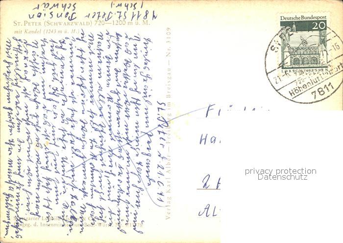 alte Postkarte St Peter Schwarzwald Fliegeraufnahme postalisch gelaufen Erhaltung siehe scans