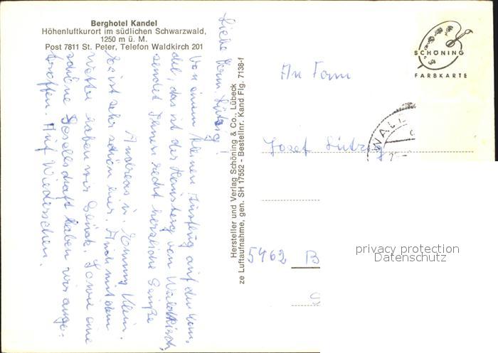 72495503 alte Postkarte St Peter Schwarzwald Fliegeraufnahme Berhotel Kandel postalisch gelaufen Erhaltung siehe scans KatCode: 11110008315095