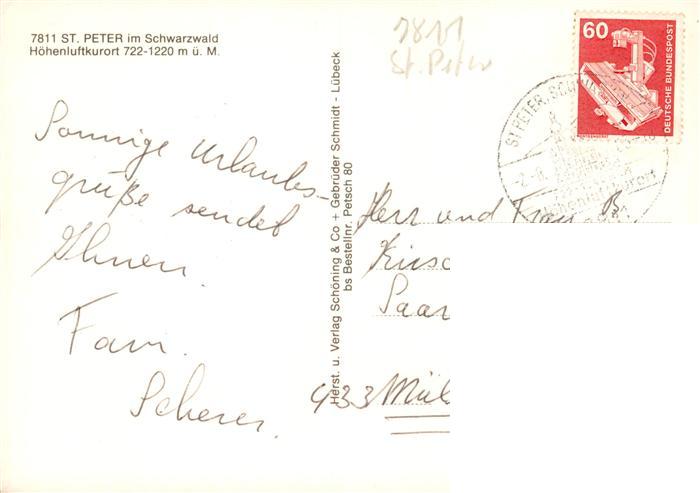 73929336 alte Postkarte St Peter Schwarzwald Fliegeraufnahme Kirche Wegweiser Kirche Panorama postalisch gelaufen Erhaltung siehe scans [FriedD77] KatCode: 11110008315095