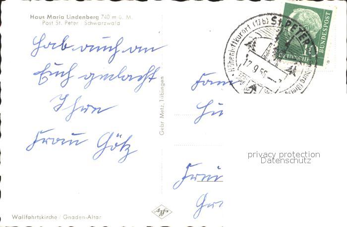 72028365 alte Postkarte St Peter Schwarzwald Haus Maria Lindenberg postalisch gelaufen Erhaltung siehe scans KatCode: 11110008315095