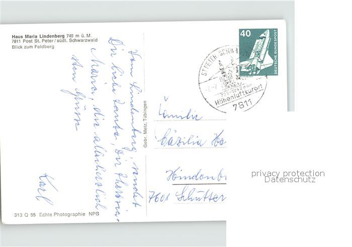 71900400 alte Postkarte St Peter Schwarzwald Haus Maria Lindenberg postalisch gelaufen Erhaltung siehe scans KatCode: 11110008315095