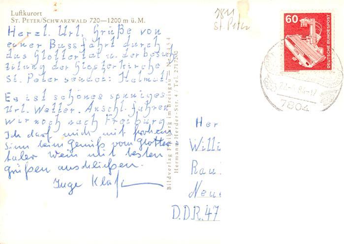73929357 alte Postkarte St Peter Schwarzwald Kandelpyramide Panorama Platte Schach Minigolf Saegendobel Lindenberg Freibad postalisch gelaufen Erhaltung siehe scans [FriedD77] KatCode: 11110008315095