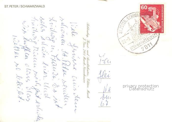 72995574 alte Postkarte St Peter Schwarzwald Kirche Teilansicht postalisch gelaufen Erhaltung siehe scans [AndreD76] KatCode: 11110008315095