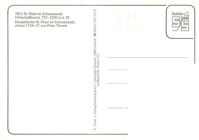 73929326 St Peter Schwarzwald Klosterkirche Inneres postalisch nicht gelaufen Erhaltung siehe scans [FriedD77] KatCode: 11110008315095
