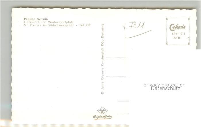 43309501 St Peter Schwarzwald Pension Schwaer postalisch nicht gelaufen Erhaltung siehe scans [NatalD47] KatCode: 11110008315095