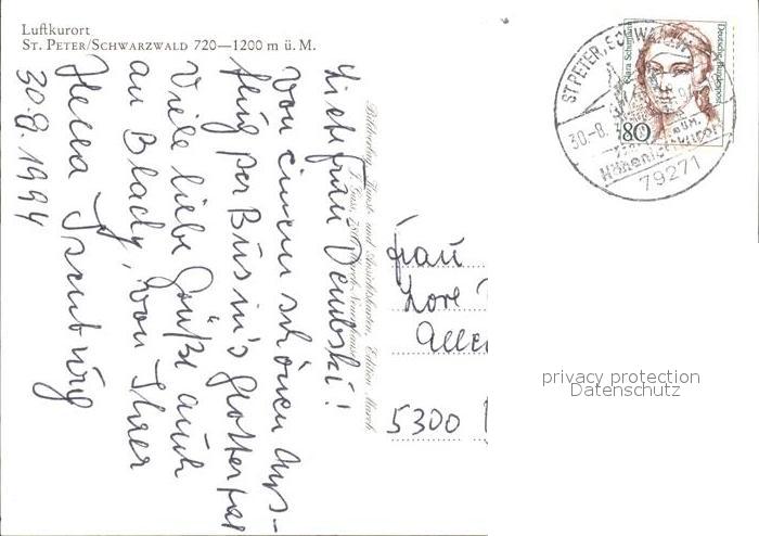 72394702 alte Postkarte St Peter Schwarzwald Platz Hotel Brunnen Trachten Panorama Luftkurort Schwarzwald postalisch gelaufen Erhaltung siehe scans KatCode: 11110008315095