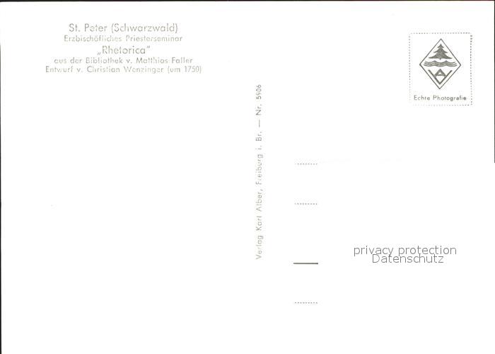 71830503 St Peter Schwarzwald Rhetorica Bibliothek Matthias Faller postalisch nicht gelaufen Erhaltung siehe scans KatCode: 11110008315095