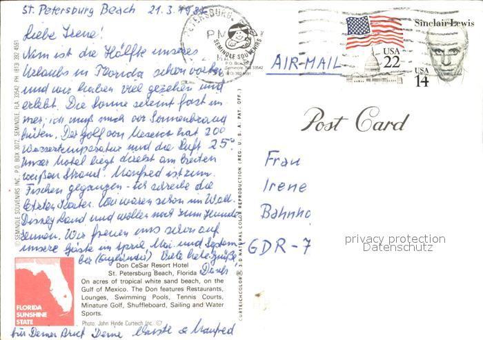 72480064 old postcard St Petersburg Florida Don CeSar Resort Hotel postalisch gelaufen Erhaltung siehe scans KatCode: 14140110000000