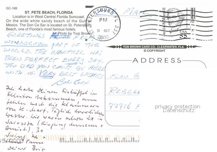 72796697 old postcard St Petersburg Florida Sankt Pete Beach postalisch gelaufen Erhaltung siehe scans [KathaD81] KatCode: 14140110000000