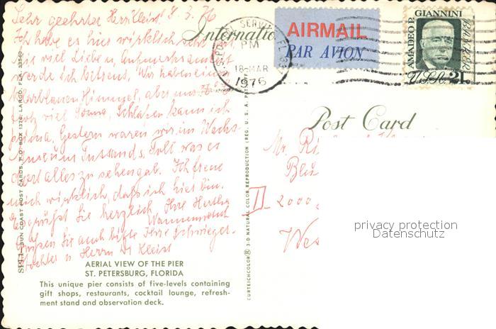 72534055 old postcard St Petersburg Florida The Pier aerial view postalisch gelaufen Erhaltung siehe scans [FriedD77 kt118box] KatCode: 14140110000000