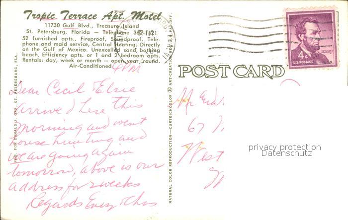 72316454 old postcard St Petersburg Florida Tropic Terrace Apt. Motel postalisch gelaufen Erhaltung siehe scans KatCode: 14140110000000