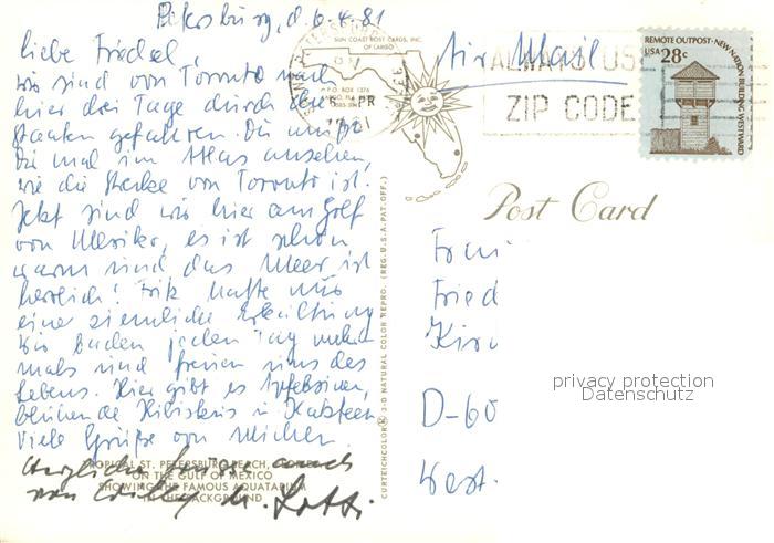 73716910 old postcard St Petersburg Florida Tropical city on the Gulf of Mexico Beach aerial view postalisch gelaufen Erhaltung siehe scans [FriedD77] KatCode: 14140110000000