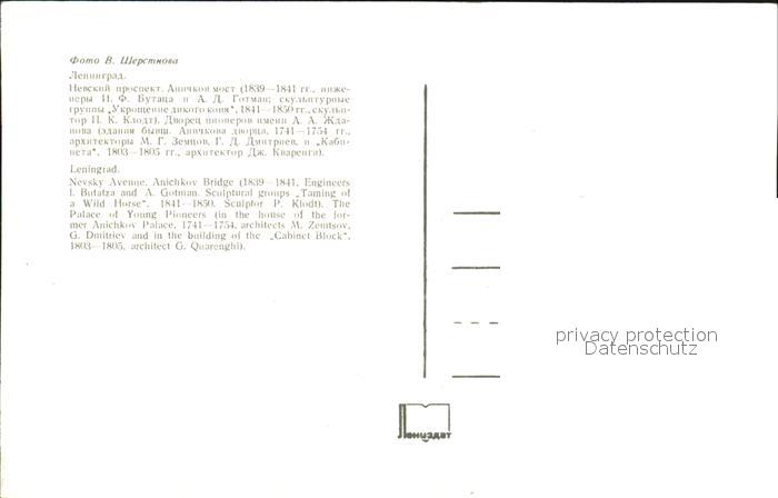 St Petersburg Leningrad Anichkov Bridge postalisch nicht gelaufen Erhaltung siehe scans