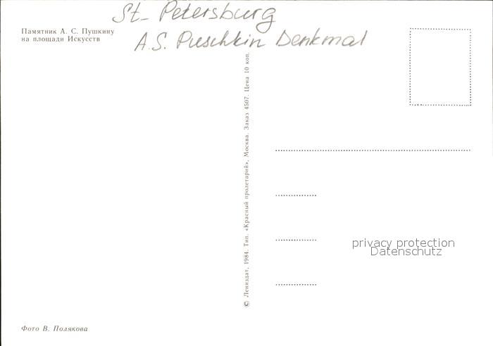 St Petersburg Leningrad AS Puschkin Denkmal Statue postalisch nicht gelaufen Erhaltung siehe scans