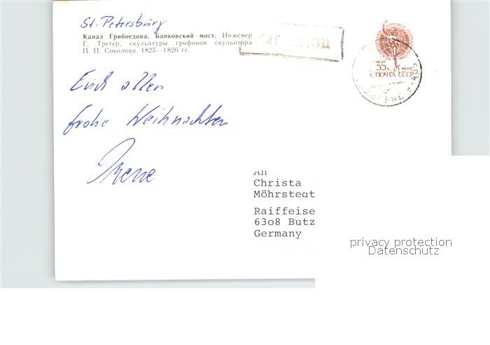 old postcard St Petersburg Leningrad Bankbruecke postalisch gelaufen Erhaltung siehe scans [FriedD77 kt114box]