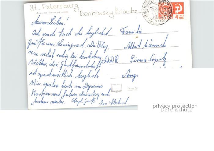 old postcard St Petersburg Leningrad Bonkowsky Bruecke postalisch gelaufen Erhaltung siehe scans [FriedD77]