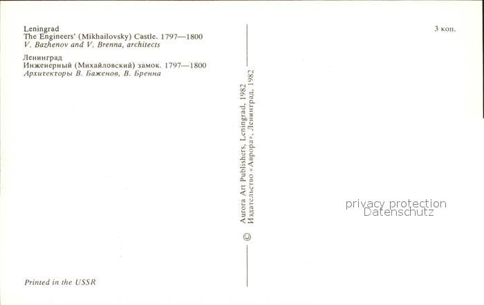 St Petersburg Leningrad Engineers Castle postalisch nicht gelaufen Erhaltung siehe scans [NatalD47]