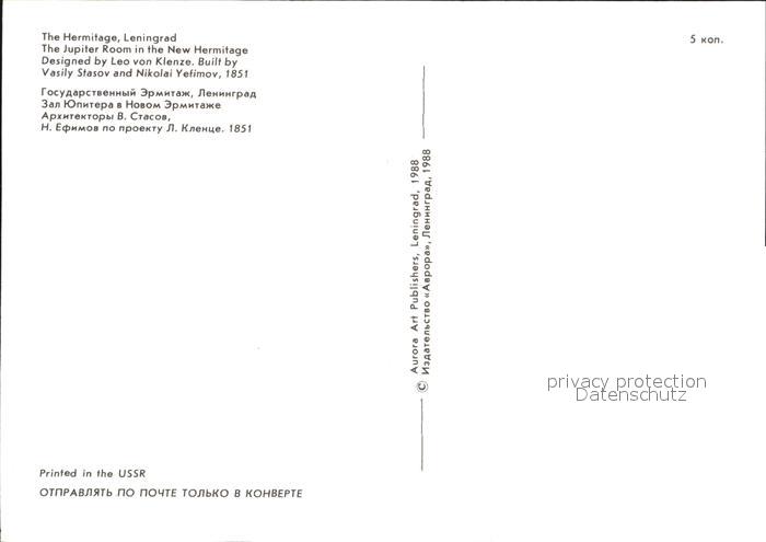 St Petersburg Leningrad Hermitage Jupiter Room postalisch nicht gelaufen Keine Postkarte (siehe scan) Erhaltung siehe scans [NatalD47]