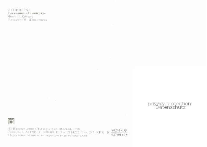 St Petersburg Leningrad Hotel Leningrad postalisch nicht gelaufen Kafferahmdeckel (keine Postkarte) Erhaltung siehe scans [NatalD47]