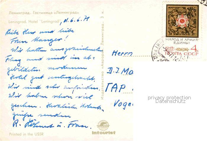 old postcard St Petersburg Leningrad Hotel Leningrad postalisch gelaufen Erhaltung siehe scans [NatalD47]