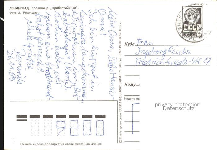 old postcard St Petersburg Leningrad Hotel Pribaltijskaja postalisch gelaufen Ganzsache (eingedruckte Briefmarke) Erhaltung siehe scans [NatalD47 kv013box]