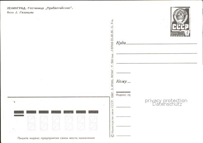 St Petersburg Leningrad Hotel Pribaltijskaja postalisch nicht gelaufen Ganzsache (eingedruckte Briefmarke) Erhaltung siehe scans [NatalD47 kt111box]