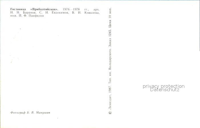 St Petersburg Leningrad Hotel Pribaltijskaja postalisch nicht gelaufen Erhaltung siehe scans