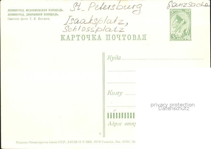 St Petersburg Leningrad Isaaksplatz Schlossplatz postalisch nicht gelaufen Ganzsache (eingedruckte Briefmarke) Erhaltung siehe scans