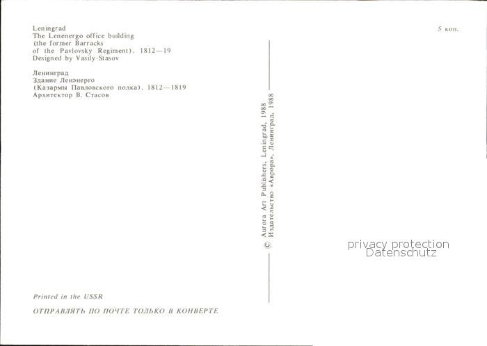 St Petersburg Leningrad Lenenergo office building postalisch nicht gelaufen Keine Postkarte (siehe scan) Erhaltung siehe scans [NatalD47 kt111box]