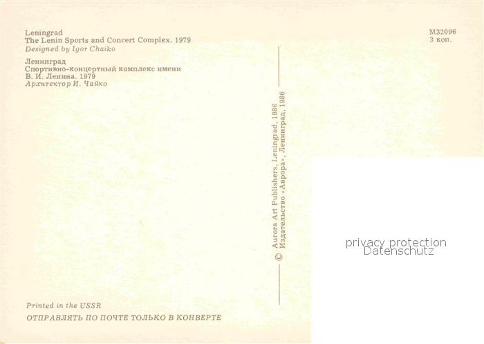 St Petersburg Leningrad Lenin Sports Concert Complex postalisch nicht gelaufen Keine Postkarte (siehe scan) Erhaltung siehe scans [NatalD47]