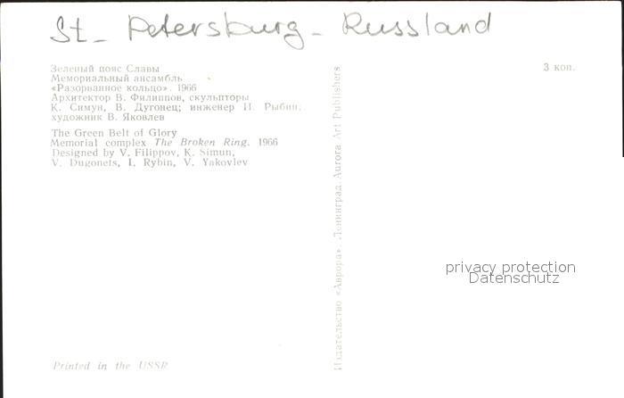 St Petersburg Leningrad Memorial complex The Broken Ring postalisch nicht gelaufen Erhaltung siehe scans