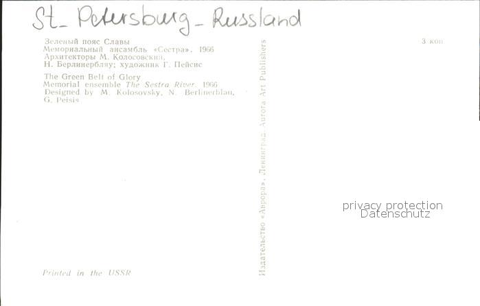 St Petersburg Leningrad Memorial ensemble The Sestra River postalisch nicht gelaufen Erhaltung siehe scans