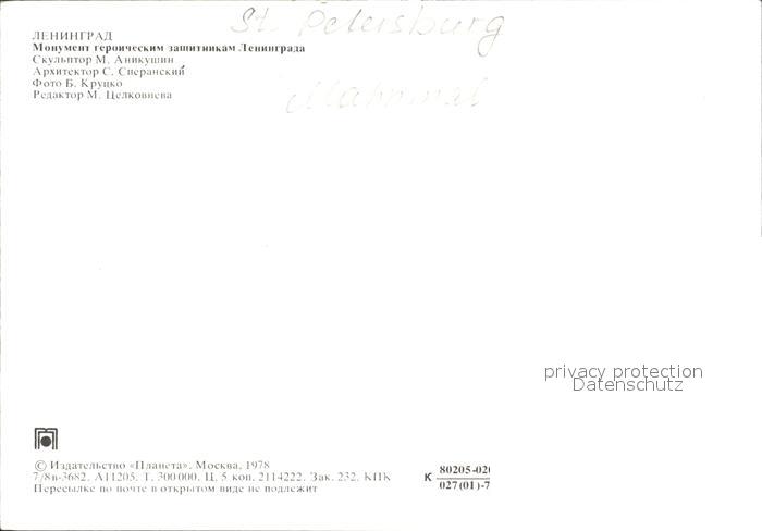 St Petersburg Leningrad Monument postalisch nicht gelaufen Erhaltung siehe scans