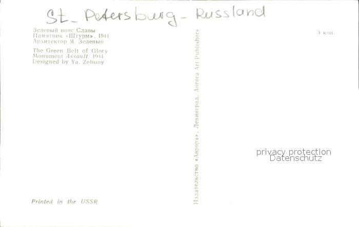 St Petersburg Leningrad Monument Assault postalisch nicht gelaufen Erhaltung siehe scans