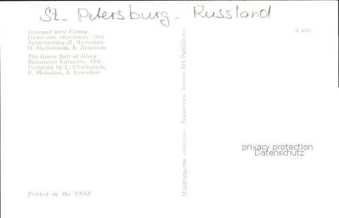 St Petersburg Leningrad Monument Katyusha postalisch nicht gelaufen Erhaltung siehe scans