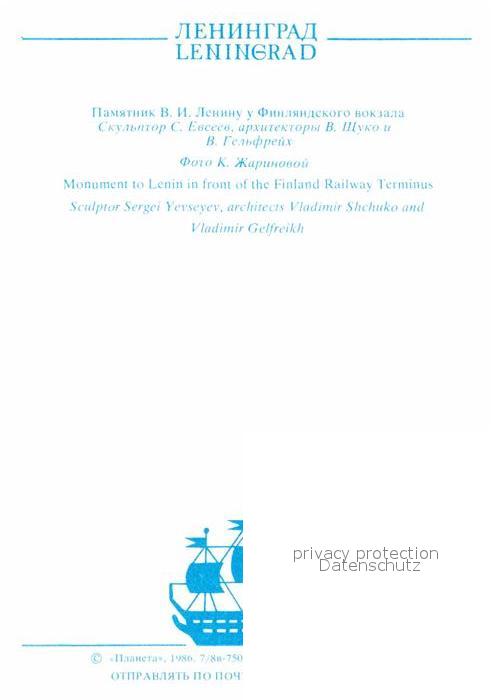 St Petersburg Leningrad Monument to Lenin Finland Railway postalisch nicht gelaufen Keine Postkarte (siehe scan) Erhaltung siehe scans [NatalD47]