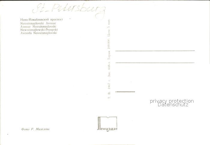 St Petersburg Leningrad Novoismaylovski Avenue postalisch nicht gelaufen Erhaltung siehe scans