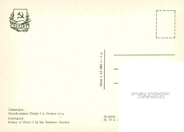 St Petersburg Leningrad Palace of Peter I Summer Garden postalisch nicht gelaufen Erhaltung siehe scans [NatalD47]
