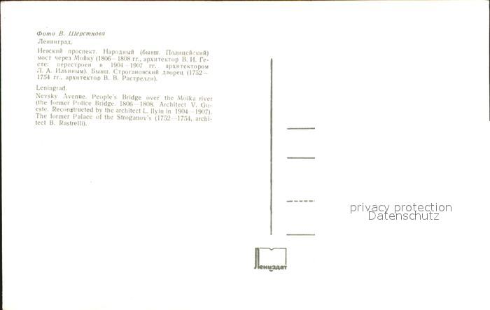 St Petersburg Leningrad People Bridge Stroganov Palace postalisch nicht gelaufen Erhaltung siehe scans