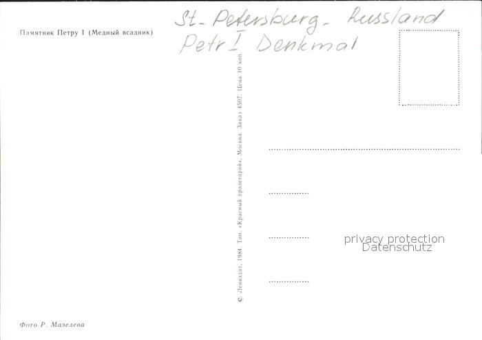 St Petersburg Leningrad Peter I Denkmal postalisch nicht gelaufen Erhaltung siehe scans