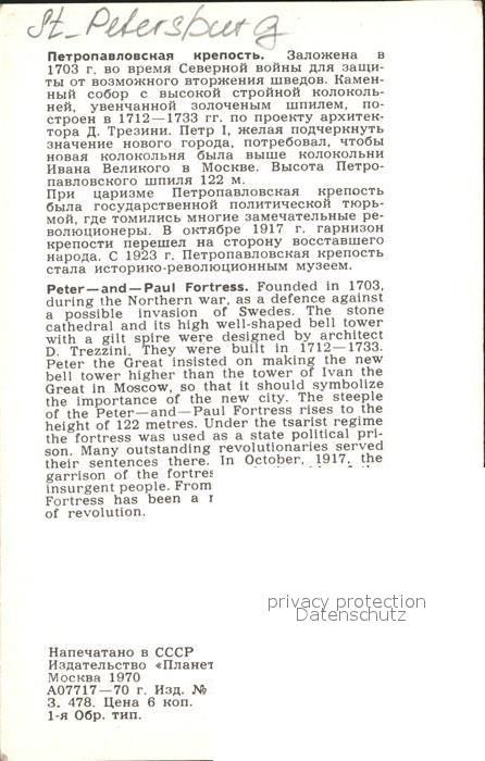 St Petersburg Leningrad Peter und Paul Fortress postalisch nicht gelaufen Erhaltung siehe scans