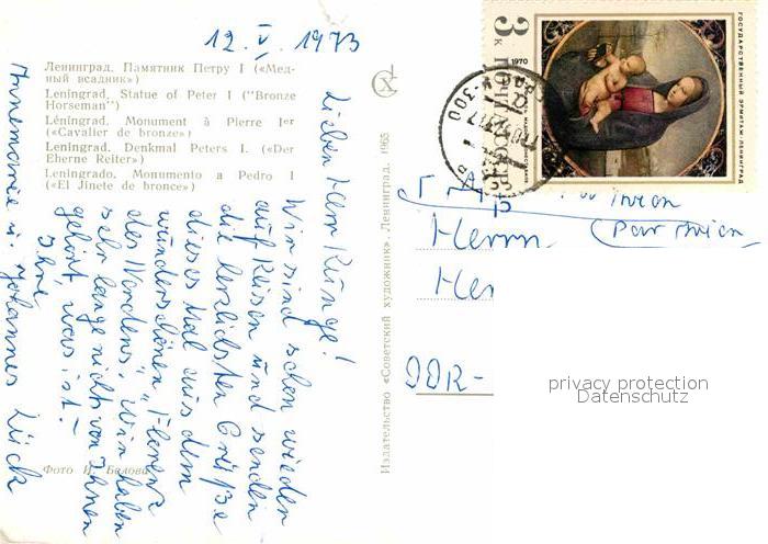 old postcard St Petersburg Leningrad Petr I Denkmal postalisch gelaufen Erhaltung siehe scans [NatalD47]